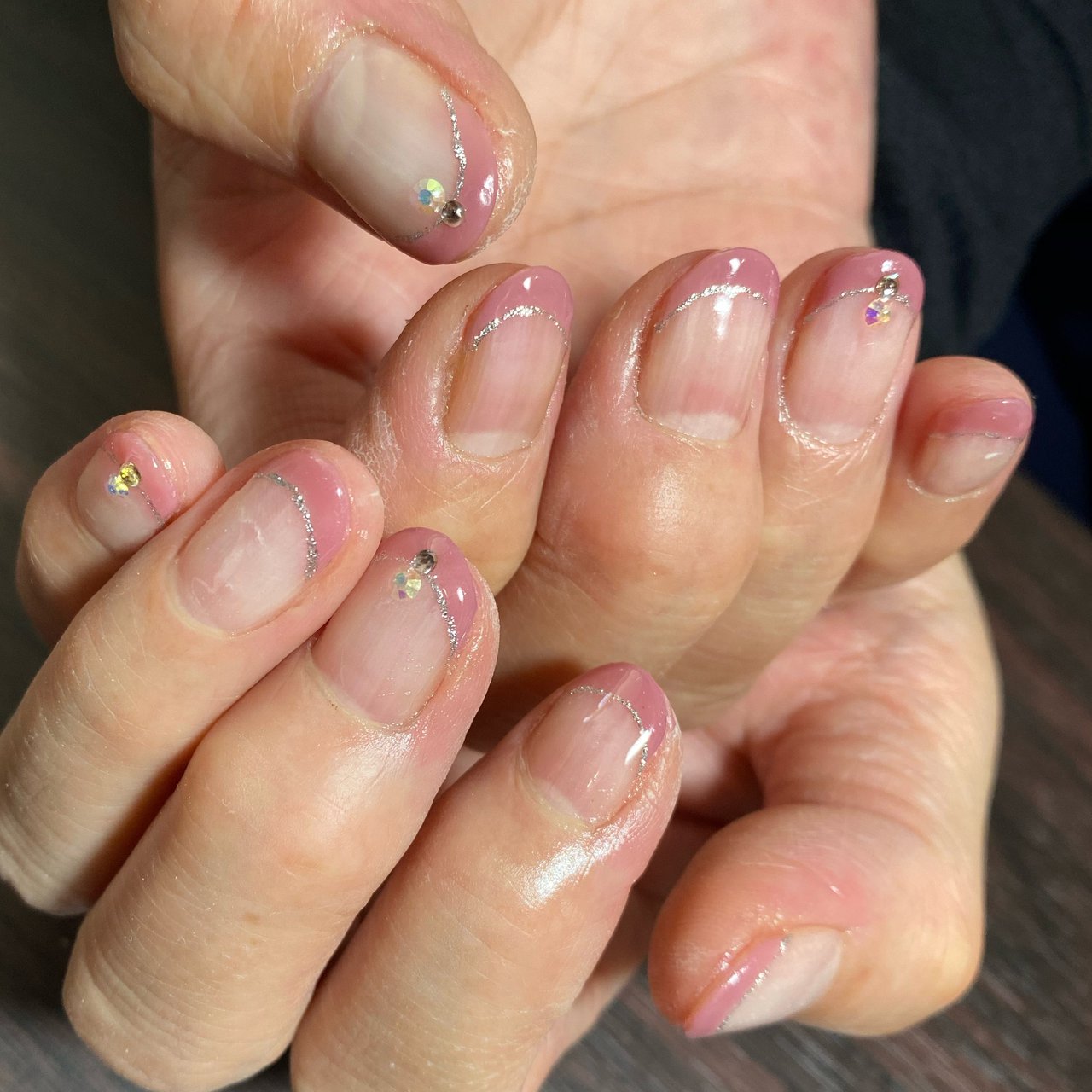 お客様ネイル Nail Nailart 美甲 ジェルネイル フレンチネイル 斜めフレンチ シースルーネイル 夏ネイル 夏ネイル18 上品ネイル ホログラム ラメネイル シンプルデザインネイル 네일 네일아트 젤네일 Tsu Tsu菅原店 Tsu樟葉店 大阪ネイルサロン